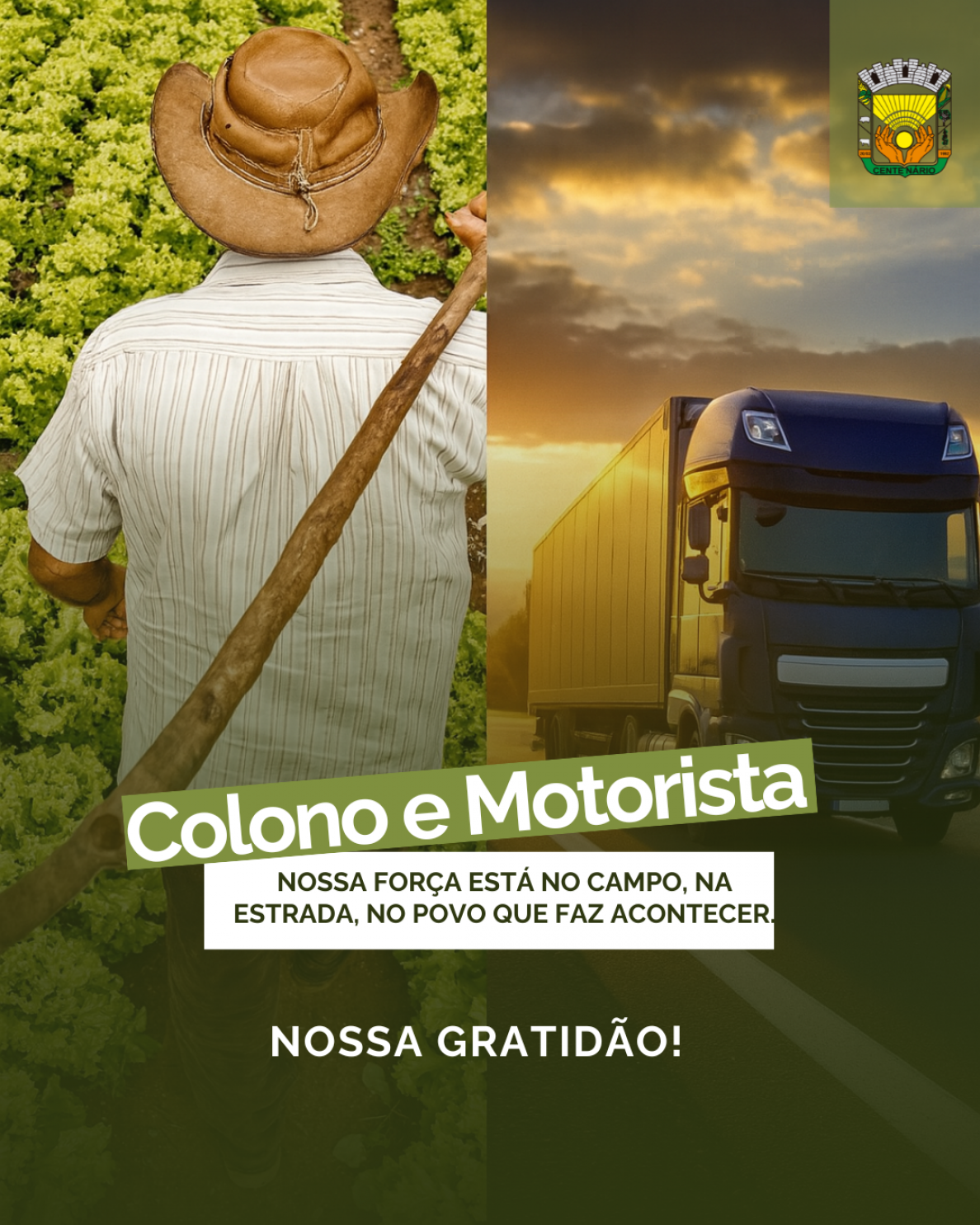 A força do nosso município e do nosso país nasce do trabalho de gente simples, mas gigante em dedicação. Dos colonos que, com as mãos na terra, garantem o alimento que sustenta as famílias. E dos motoristas que cruzam estradas, conectando distâncias e levando progresso a cada destino.