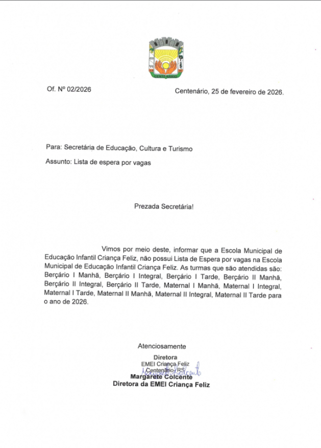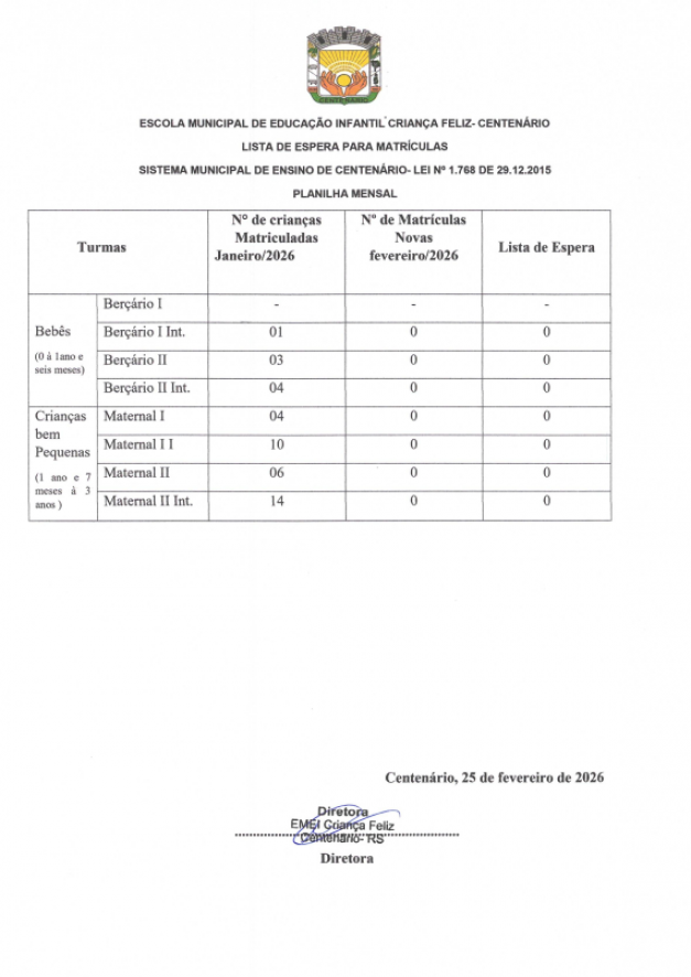 Lista de espera matrículas EMEI Criança FelizLista de espera matrículas EMEI Criança Feliz